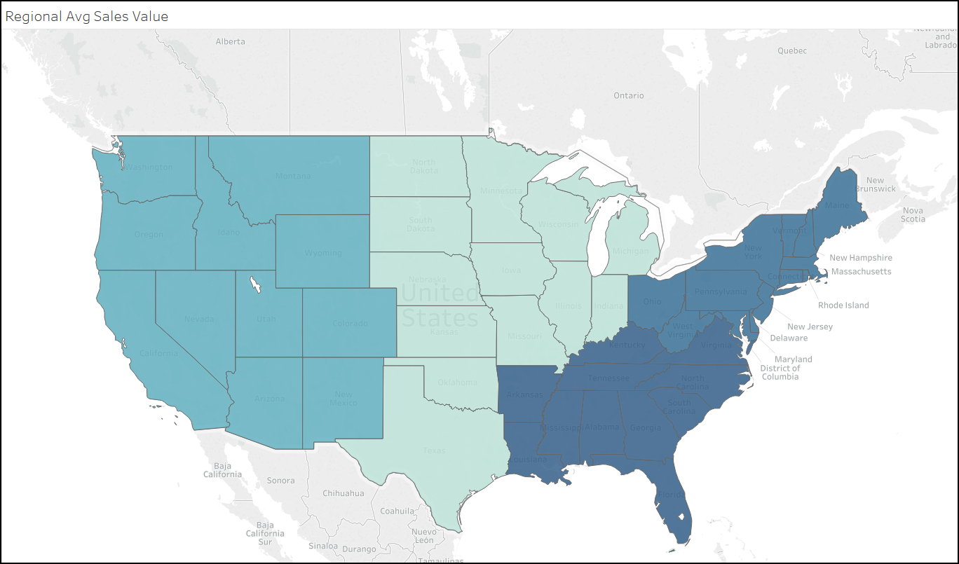 Now let’s look at it as a real use case. I want to know the average sales in the Region for each State. It’s simply {FIXED [Region} : AVG([Sales])}.