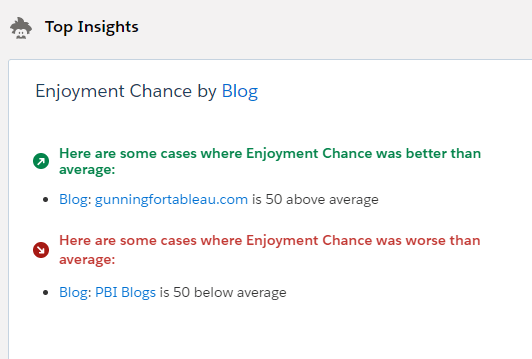 Tableau has just released an integration with Einstein Predictions, and there’s a ton to be explored and celebrated with that. It’s the first formal integration between Tableau and Salesforce stacks since the acquisition, it’s the easiest AI/ML in any BI product around, and it truly lowers the barrier to entry for people who know nothing about R, Python, etc. And it surfaces some great insights!