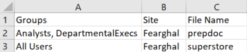 One column has a list of Groups you’d like to send the email to, one column has the name of the Site those Groups exist on, and one column has the File Name that the CSV should be distributed with.