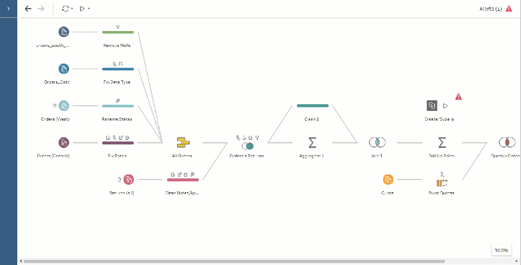 In Tableau, a .hyper file is a raw data file. It contains the results of the data from the datasources as well as any calculations which can be materialized at the individual row level (calculations like string manipulations, differences between two columns, etc.). Calculations which can’t be materialized on individual rows, however, aren’t stored in a .hyper file, but instead are saved in a .tds file (Tableau Datasource). This file contains the logic for level of detail calculations, aggregate calculations (such as ratios), and the username-based calculations often used for row level security. A .tdsx file is the combination of the raw data (.hyper file) and the associated logic (.tds file). Tableau Prep, however, doesn’t allow for the customization of .tds files. If you want to add aggregate calculations, you can do so in Desktop, but when Conductor runs your flow, it will overwrite your entire Datasource, replacing your .tds file with a generic one and losing all of your calculations in the process. Below is a walk-through of how to avoid that behavior.